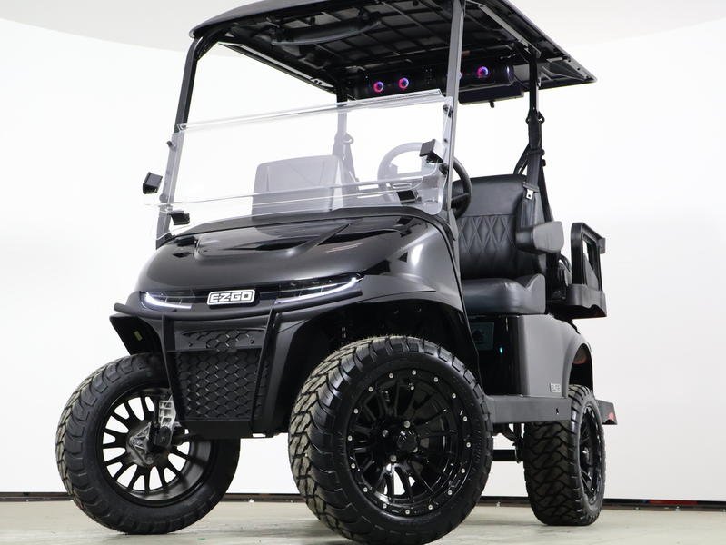2026 E-Z-GO RXV 4 Summit XTL ELiTE. Lifted 4-seater with Samsung SDI Lithium, 10″ ECOXGEAR touchscreen, 28″ Elite soundbar, and IntelliBrake technology.