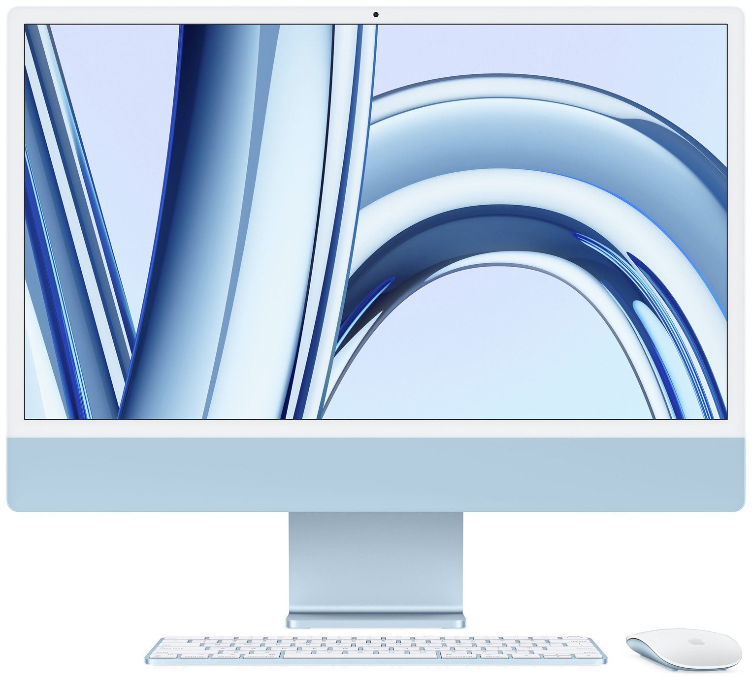 IMac. Iconic design. The world’s best all-in-one desktop computer, now supercharged by the M3 chip. Get more done faster with a next-generation chip from Apple. With a stunning 24-inch display in an iconic design and best-in-class camera, mics and speakers. From creating presentations to gaming, you’ll fly through work and play. IMac is perfect for work and play. With 4.5K Retina display features 500 nits of brightness and support for 1 billion colours. Everything from streaming movies to editing photos is sharp and colourful. . The all-in-one desktop design is strikingly thin, comes in vibrant colours and becomes the centrepiece of any room. Look and sound your best with a 1080p FaceTime HD camera, a studio-quality three-mic array and a six-speaker sound system with Spatial Audio. IMac comes with plenty of fast SSD storage for all your photo and video libraries, files, and apps. . Mac is designed to be easy to learn and use – so you can start doing what you love in no time at all. IMac features two Thunderbolt / USB 4 ports, up to two USB 3 ports and a headphone jack. Enjoy seamless wireless connectivity with Wi-Fi 6E and Bluetooth 5.3. . CPU and Memory: Apple M3 chip .; Octa core processor.; 8 GB RAM.; Hard drive: 512GB SSD storage.; Interfaces and connectivity: Bluetooth.; Wi-Fi 6E (802.11ax).; Wireless/Wi-Fi enabled.; Webcam and sound: Built-in audio sound system.; Wireless keyboard and mouse.; Operating system and software: Mac OS.; Monitor: 24in display.; Resolution 4480 x 2520 pixels.; Refresh rate 60 Hz.; General features: Size H54.7, W46.1, D14.7cm.; Weight 4.48kg.; Manufacturer’s 1 year guarantee.; EAN: 0194253781400.