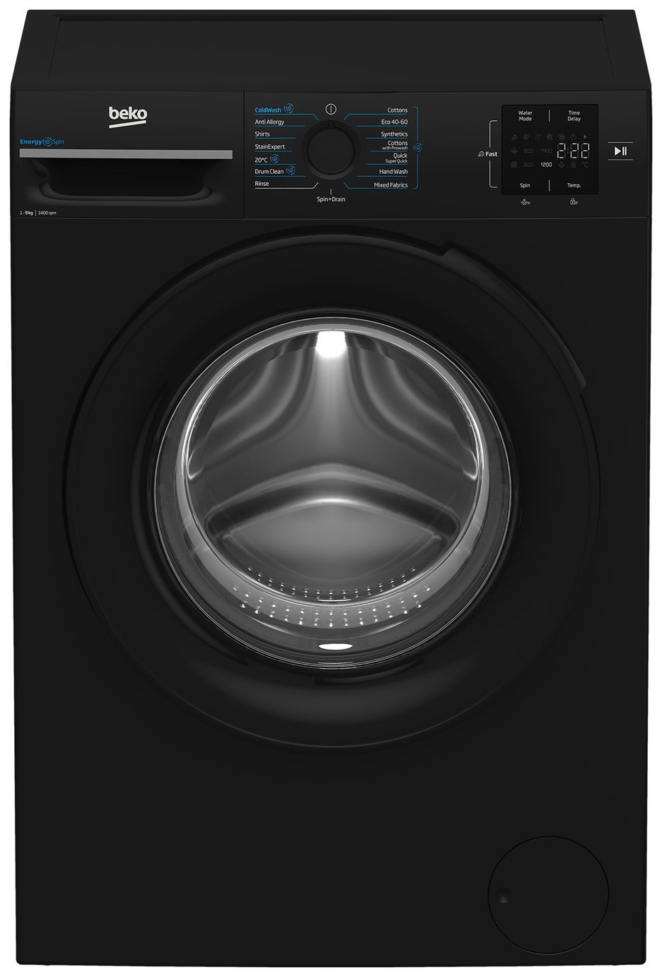 Experience exceptional energy efficiency with this machine’s advanced EnergySpin technology. Using innovative drum movements, EnergySpin accelerates detergent dissolution with minimal heat. You’ll also benefit from our Quick programme, which washes up to 9kg of laundry in just 28 minutes. . For smaller loads, the Super Quick programme cleans 2kg in only 14 minutes, ensuring flexibility to suit your busy schedule. . Anti-Allergy programme – This programme is great for sensitive skin or allergy sufferers. Overview: Wash capacity 9kg.; 15 programmes.; Variable spin speed.; Variable temperature.; 28 minute quick wash.; Manufacturer’s 10 year parts and 1 year labour guarantee.; Size H84.5, W60, D54.6cm.; Programmes: Cottons.; Delicates.; Economy.; Automatic half load.; Hand wash.; Mixed.; Pre-wash option.; Quick wash.; Shirts.; Spin and drain.; Synthetics.; Wool.; Controls: LED display.; Dial control.; 24 hours delayed start.; Time remaining indicator.; Performance: Energy efficiency class: A.; Energy consumption per 100 cycles: 49kWh.; Spin drying energy efficiency class: B.; Noise emissions: 75dB.; Noise emission class: B.; Water Consumption per Washing cycle: 49 litres.; Spin speed 1400rpm.; Washing performance rating A.; 53% moisture remaining after 60° cycle.; General features: Child lock.; Cold water fill.; Pause facility.; Weight 70kg.; EAN: 8690842644382.