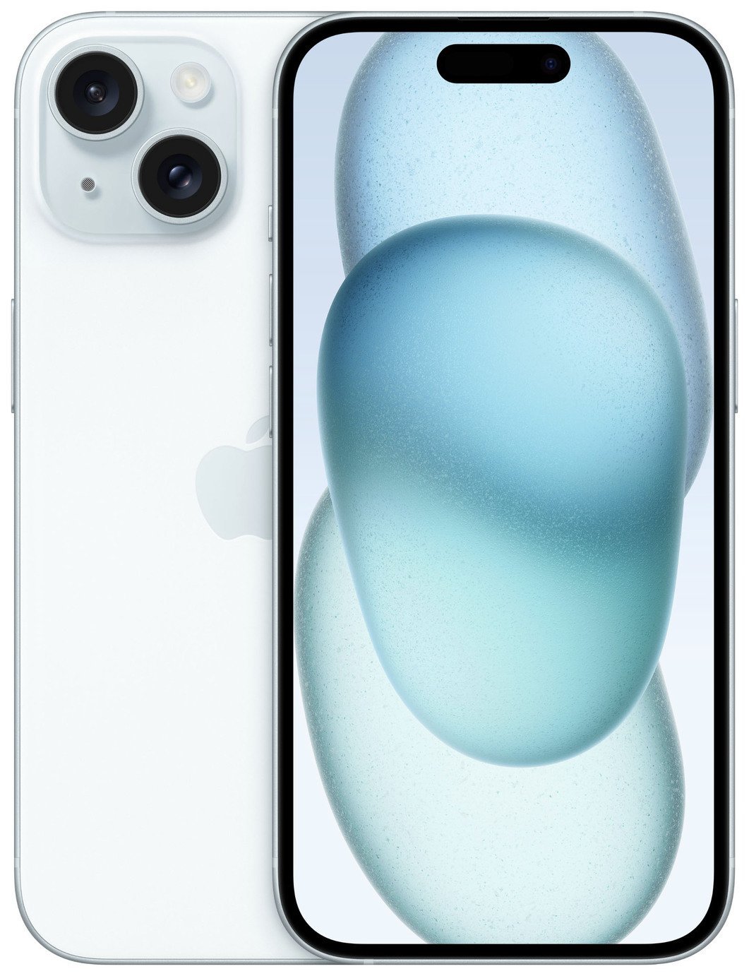 This product is supplied without a charging adaptor.; The required output of a suitable charging device is 4.5W minimum and 22W maximum.; This product supports PD fast charging (harmonised fast charging).; iPhone 15 brings you Dynamic Island, a 48MP Main camera and USB-C – all in a durable colour-infused glass and aluminium design. Dynamic Island bubbles up alerts and Live Activities – so you don’t miss them while you’re doing something else. You can see who’s calling, check your flight status and so much more. iPhone 15 is splash, water and dust resistant. The Ceramic Shield front is super-tough. And the 6.1-inch Super Retina XDR display is up to 2x brighter in the sun compared to iPhone 14. . The 48MP Main camera shoots in super high resolution. So it’s easier than ever to take standout photos with amazing detail. The 2x optical-quality Telephoto lets you frame the perfect close-up. And Capture portraits with dramatically more detail and colour. Just tap to shift the focus between subjects – even after you take the shot. . The superfast chip powers advanced features like computational photography, fluid Dynamic Island transitions and Voice Isolation for phone calls. And A16 Bionic is incredibly efficient to help deliver great all-day battery life. The USB-C connector lets you charge your Mac or iPad with the same cable you use to charge iPhone 15. You can even use iPhone 15 to charge Apple Watch or AirPods. . If you need emergency services and you don’t have mobile service or Wi-Fi, you can use Emergency SOS via satellite. With Crash Detection, iPhone can detect a serious car crash and call for help if you can’t. iPhone comes with privacy protections that help keep you in control of your data. It’s made with recycled materials to minimise environmental impact. And it has built-in features that make iPhone more accessible to all. . Every iPhone comes with a one-year limited warranty and up to 90 days of complimentary technical support. Get AppleCare+ or AppleCare+ with Theft and Loss to extend your coverage. As part of Apple’s efforts to reach carbon neutrality by 2030, iPhone 15 and iPhone 15 Plus do not include a power adapter or EarPods. Apple encourages you to use any compatible power adapter. If you need a new Apple power adapter or headphones, please purchase these accessories separately. . Please note: In order to reduce e-waste, the manufacturer has chosen not to include a USB plug in the box. You can use an existing USB plug with the included USB cable or purchase one from our site. Please see the ‘Box Contents’ section below for more details. . Model number: MTP43ZD/A. Network: 5G network capability.; Dual SIM phone: supports 2 SIM simultaneously.; SIM card type: nano SIM and eSIM.; Dual eSIM support.; Display and Design: 6.1 inch Super Retina XDR display.; Resolution 2556 x 1179 pixels.; With a density of 460 pixels per inch.; Touch screen.; Curved screen.; Toughened glass.; Dimensions: Size H147.6, W71.6, D7.8mm.; Weight 171g.; Camera and Video: Dual camera.; Front camera 12MP.; Rear camera 48MP.; True Tone flash.; Camera features: Dual-LED dual-tone flash, HDR, Panorama, Night mode, Burst mode, Photo geotagging.; Video capture in 4K HDR quality.; Storage: Internal memory 128GB.; Technical specifications: Hex core A16 Bionic chip processor.; Operating system: iOS 17.; App store compatibility: Apple app store.; Product features: MP3.; Wireless charging.; This phone features fast charge technology – faster than standard charging, for when time is of the essence.; Contactless payment – Link up your card to your phone for easy buying.; Water resistant up to 6m depth.; Connectivity: Wi-Fi.; Bluetooth.; NFC.; GPS.; Box Contents: iPhone 15, USB-C Charge Cable.; Only charging cable included – USB C to USB C cable required.; Energy efficiency information: Energy efficiency class: B.; No. Of battery cycles: 1000.; Water IP rating: 8.; Dust IP rating: 6.; Drop resistance rating: C.; Repairability rating: C.; General information: Battery life on standby: 34 hours.; EAN: 195949036606.; 1 year guarantee.