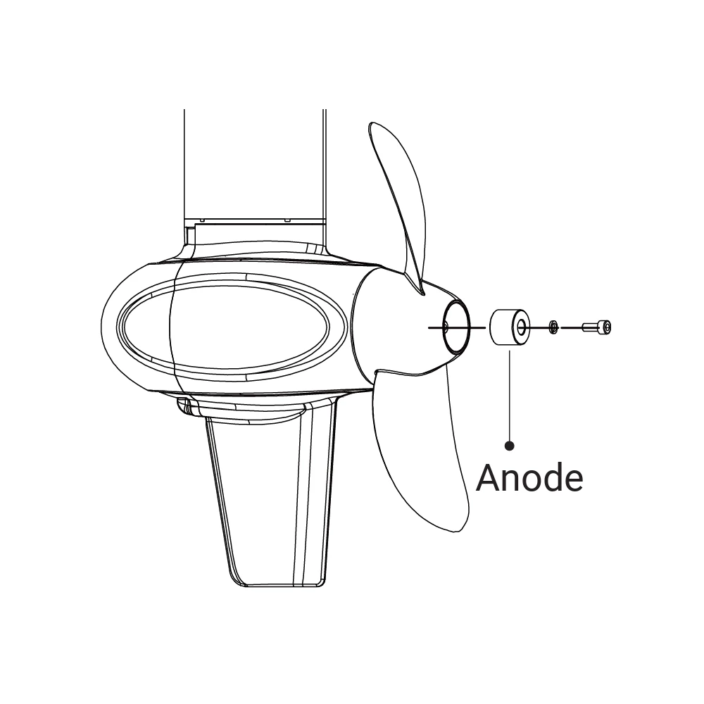 An anode that fits to the propeller shaft of the outboard. Fits the Spirit 1.0 Plus/Evo and POD 1.0 Evo motors.